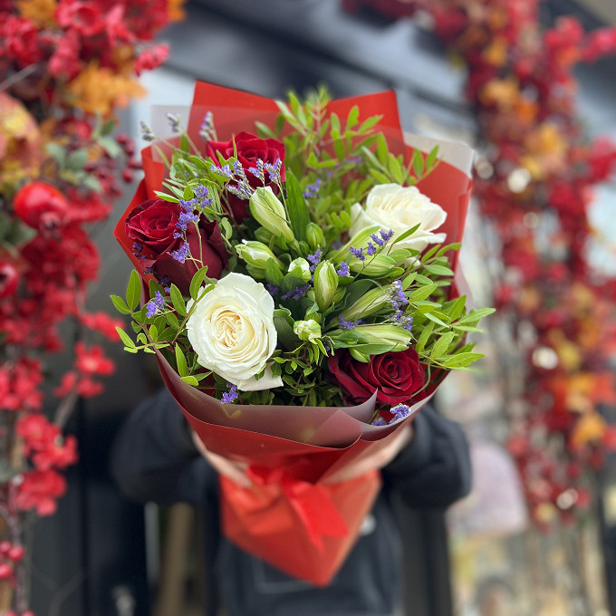 Микс красно-белых роз